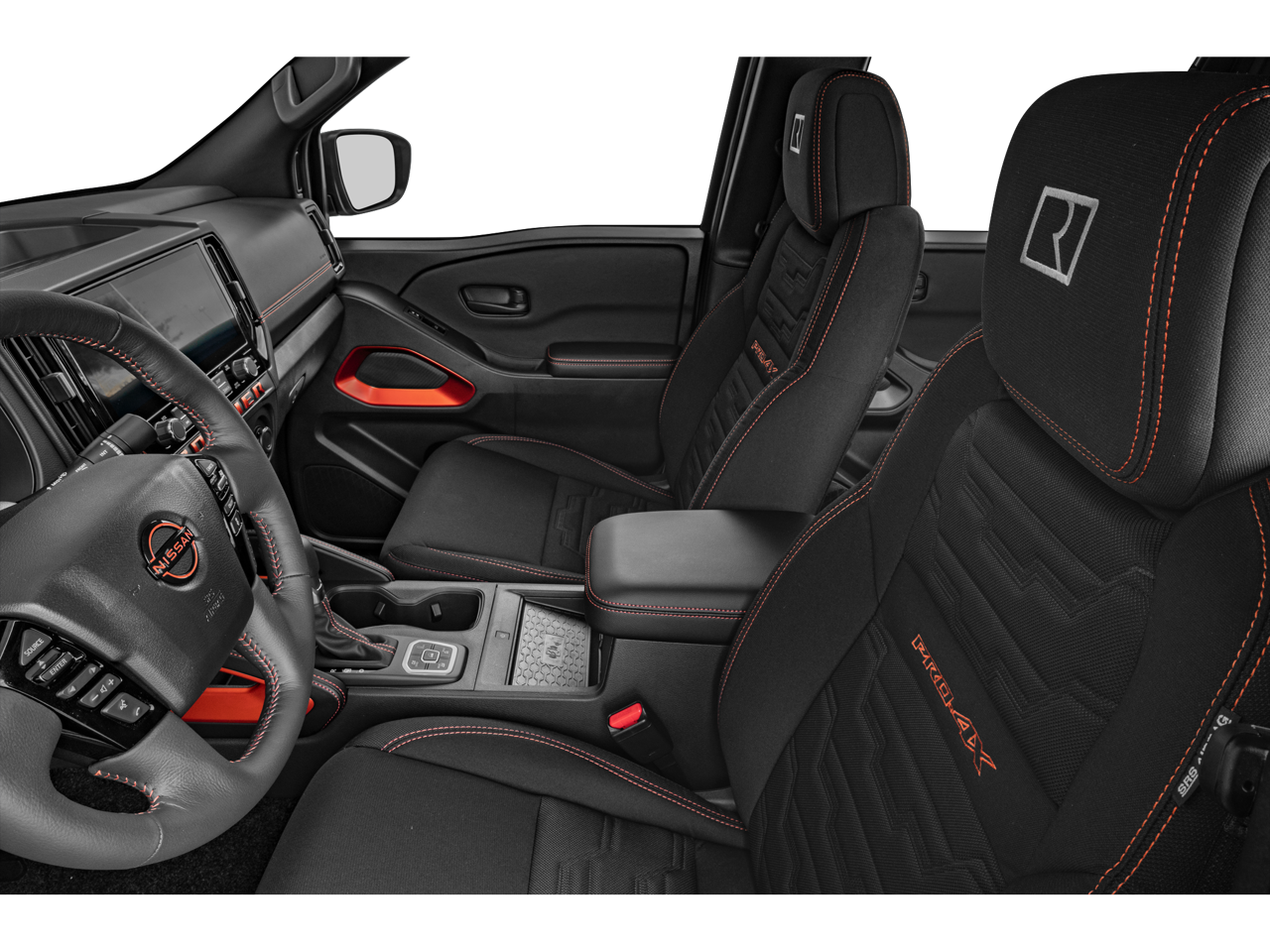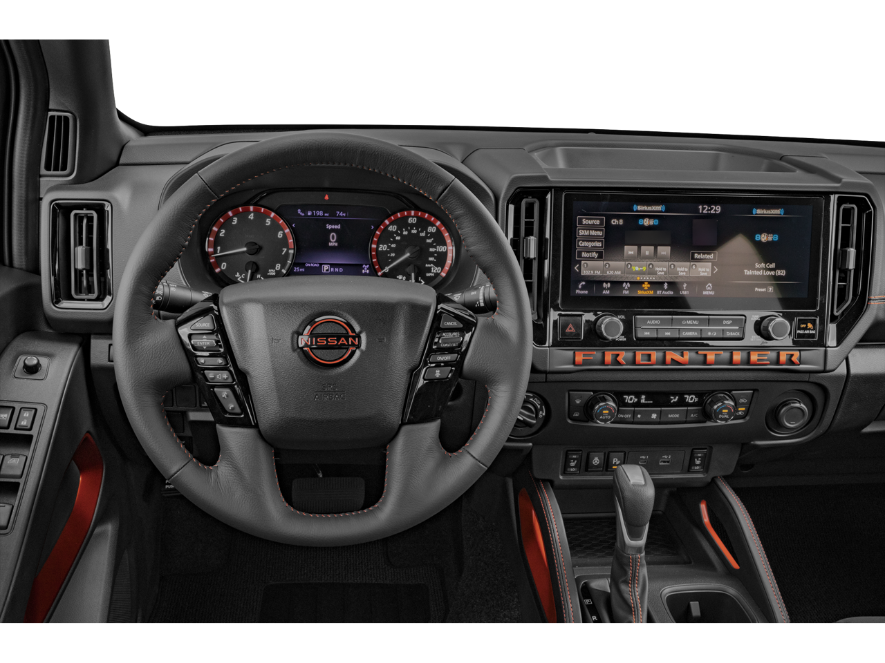 This Frontier also boasts a sleek and distinctive exterior, highlighted by the unique ROUSH styling touches. The bold orange paint and premium wheels give this truck a commanding presence on the road.