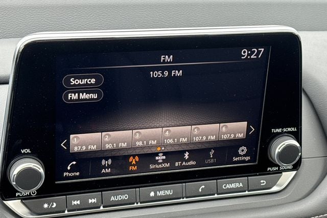 - Radio: AM/FM NissanConnect -inc: 6 speakers plus 2 tweeters, Apple CarPlay, Android Auto, 8" color touch screen display, Bluetooth®, 2 front USB type-C, Wi-Fi hotspot and NissanConnect Services powered by SiriusXM