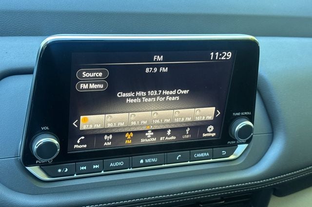 - Radio: AM/FM NissanConnect -inc: 6 speakers plus 2 tweeters, Apple CarPlay, Android Auto, 8" color touch screen display, Bluetooth®, 2 front USB type-C, Wi-Fi hotspot and NissanConnect Services powered by SiriusXM