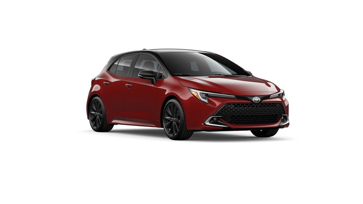 This 2026 Finish Line Red/Midnight Black Metallic Toyota Corolla Hatchback XSE FWD is well equipped and includes these features and benefits: XSE Package, Corolla Hatchback XSE, 5D Hatchback, 2.0L I4, CVT, Black Artificial Leather, 8 Speakers, AM/FM radio: SiriusXM, Radio data system, Radio: 8 Toyota Audio Multimedia, 4-Wheel Disc Brakes, ABS brakes, Air Conditioning, Alloy wheels, Auto High-beam Headlights, Automatic temperature control, Brake assist, Bumpers: body-color, Compass, Delay-off headlights, Driver door bin, Driver vanity mirror, Dual front impact airbags, Dual front side impact airbags, Electronic Stability Control, Emergency communication system: Safety Connect (up to 10-year trial subscription), Exterior Parking Camera Rear, Four wheel independent suspension, Front anti-roll bar, Front Bucket Seats, Front Center Armrest, Front dual zone A/C, Front fog lights, Front reading lights, Heated door mirrors, Heated front seats, Heated Sport Front Seats, Illuminated entry, Knee airbag, Leather Shift Knob, Leather steering wheel, Low tire pressure warning, Occupant sensing airbag, Outside temperature display, Overhead airbag, Overhead console, Panic alarm, Passenger door bin, Passenger vanity mirror, Power door mirrors, Power driver seat, Power steering, Power windows, Rear anti-roll bar, Rear seat center armrest, Rear side impact airbag, Rear window defroster, Rear window wiper, Remote keyless entry, Security system, SofTex Seat Trim with Fabric Inserts, Speed control, Speed-sensing steering, Split folding rear seat, Spoiler, Steering wheel mounted audio controls, Tachometer, Telescoping steering wheel, Tilt steering wheel, Traction control, Trip computer, Turn signal indicator mirrors, Variably intermittent wipers, and Wheels: 18 Graphite-Colored Alloy. Recent Arrival! 30/38 City/Highway MPG