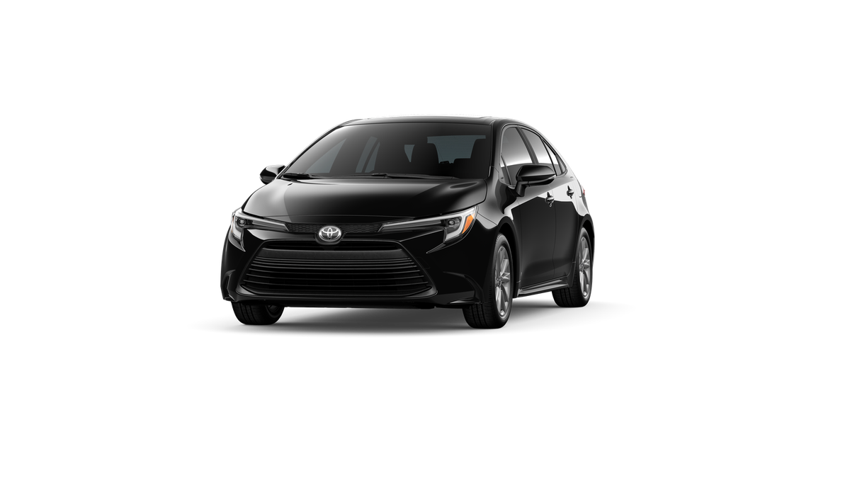 This 2026 Midnight Black Metallic Toyota Corolla Hybrid XLE FWD is well equipped and includes these features and benefits: Corolla Hybrid XLE, 4D Sedan, 1.8L DOHC 16V VVT, eCVT, Midnight Black Metallic, Blacksoftex Cloth, ABS brakes, Active Cruise Control, Alloy wheels, Electronic Stability Control, Heated door mirrors, Heated Front Bucket Seats, Heated front seats, Illuminated entry, JBL Premium Audio, Low tire pressure warning, Navigation System, Navigation system: Drive Connect Cloud Navigation (1-year trial subscription), Power moonroof, Remote keyless entry, Traction control, 4-Wheel Disc Brakes, 6 Speakers, Air Conditioning, AM/FM radio: SiriusXM, Apple CarPlay/Android Auto, Auto High-beam Headlights, Automatic temperature control, Brake assist, Bumpers: body-color, Delay-off headlights, Driver door bin, Driver vanity mirror, Dual front impact airbags, Dual front side impact airbags, Emergency communication system: Safety Connect (up to 10-year trial subscription), Exterior Parking Camera Rear, Four wheel independent suspension, Front anti-roll bar, Front Bucket Seats, Front Center Armrest, Front reading lights, Fully automatic headlights, Knee airbag, Leather steering wheel, Occupant sensing airbag, Outside temperature display, Overhead airbag, Panic alarm, Passenger door bin, Passenger vanity mirror, Power door mirrors, Power driver seat, Power steering, Power windows, Radio data system, Radio: 10.5 Toyota Audio Multimedia, Rear anti-roll bar, Rear seat center armrest, Rear side impact airbag, Rear window defroster, SofTex Seat Trim, Speed control, Split folding rear seat, Steering wheel mounted audio controls, Tachometer, Telescoping steering wheel, Tilt steering wheel, Trip computer, Turn signal indicator mirrors, Variably intermittent wipers, and Wheels: 16 10 Spoke Alloy. 50/43 City/Highway MPG