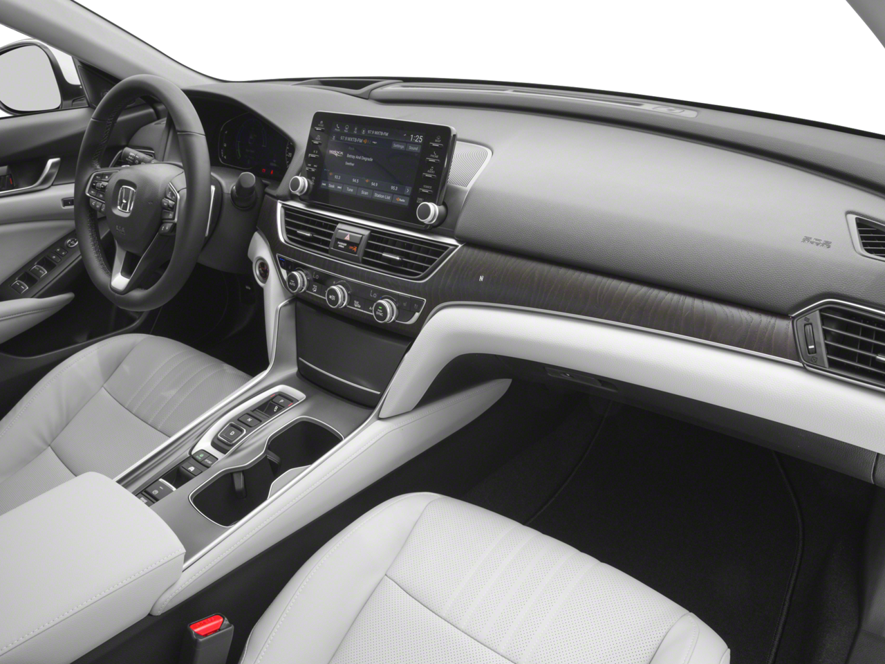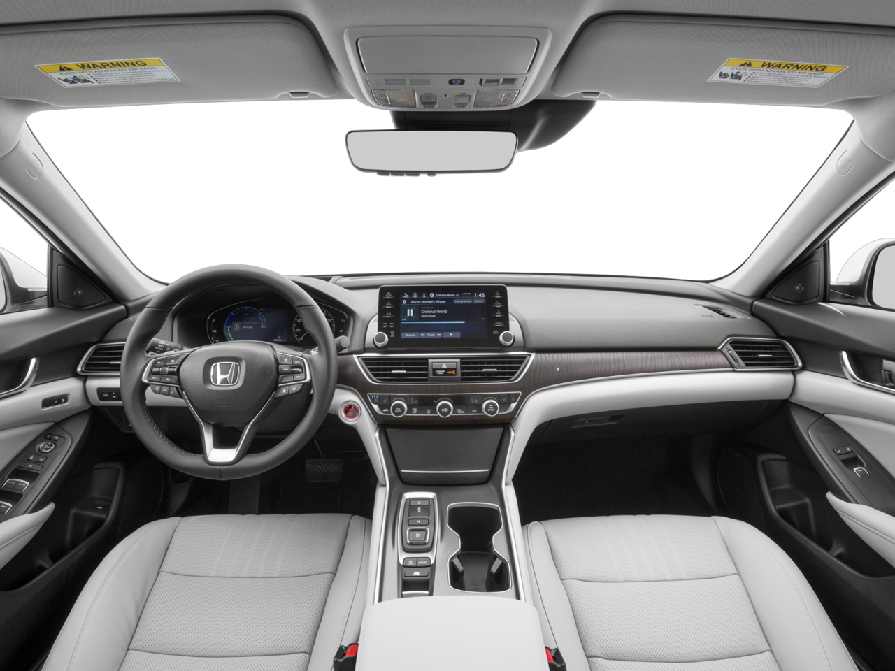 This 2018 White Orchid Pearl Honda Accord Hybrid Touring FWD is well equipped and includes these features and benefits: Accord Hybrid Touring, FWD, 10 Speakers, 17 Machine-Finished Alloy Wheels, 4-Wheel Disc Brakes, ABS brakes, Adaptive suspension, Air Conditioning, Alloy wheels, AM/FM radio: SiriusXM, Apple CarPlay/Android Auto, Auto High-beam Headlights, Auto-dimming Rear-View mirror, Automatic temperature control, Blind Spot Information (BSI) System warning, Brake assist, Bumpers: body-color, Compass, Delay-off headlights, Driver door bin, Driver vanity mirror, Dual front impact airbags, Dual front side impact airbags, Electronic Stability Control, Emergency communication system: HondaLink, Exterior Parking Camera Rear, Four wheel independent suspension, Front anti-roll bar, Front Bucket Seats, Front Center Armrest, Front dual zone A/C, Front fog lights, Front reading lights, Fully automatic headlights, Garage door transmitter: HomeLink, Heads-Up Display, Heated & Ventilated Front Bucket Seats, Heated door mirrors, Heated front seats, Heated rear seats, Illuminated entry, Knee airbag, Leather steering wheel, Leather-Trimmed Seats, Low tire pressure warning, Memory seat, Navigation System, Occupant sensing airbag, Outside temperature display, Overhead airbag, Overhead console, Panic alarm, Passenger door bin, Passenger vanity mirror, Power door mirrors, Power driver seat, Power moonroof, Power passenger seat, Power steering, Power windows, Radio data system, Radio: 450-Watt AM/FM/HD Premium Audio System, Rain sensing wipers, Rear anti-roll bar, Rear seat center armrest, Rear window defroster, Remote keyless entry, Security system, Speed control, Speed-sensing steering, Speed-Sensitive Wipers, Split folding rear seat, Steering wheel mounted audio controls, Telescoping steering wheel, Tilt steering wheel, Traction control, Trip computer, Turn signal indicator mirrors, Variably intermittent wipers, and Ventilated front seats. Accord Hybrid Touring, FWD.