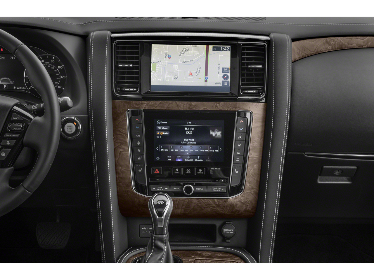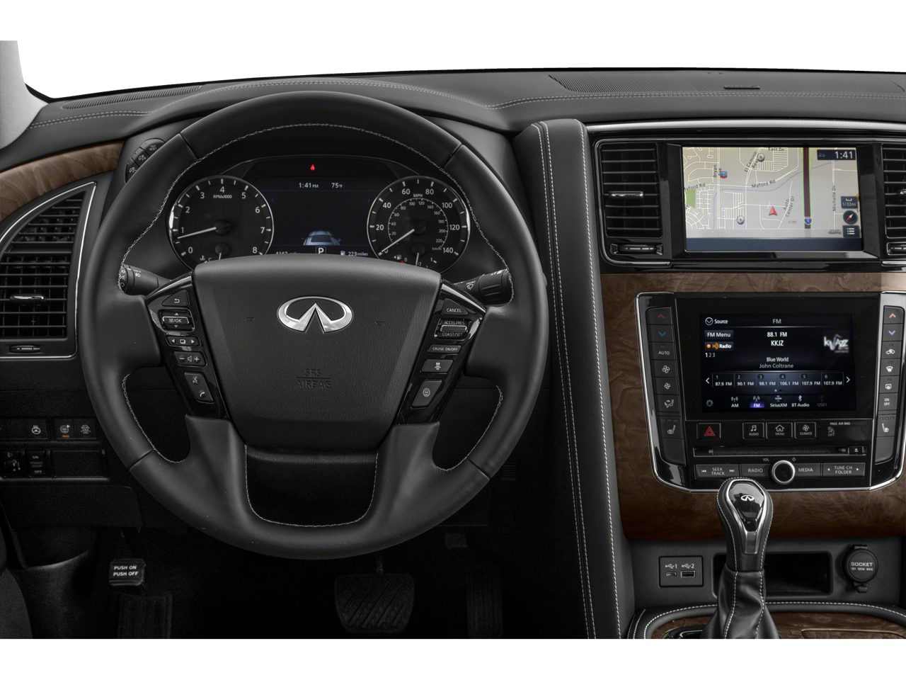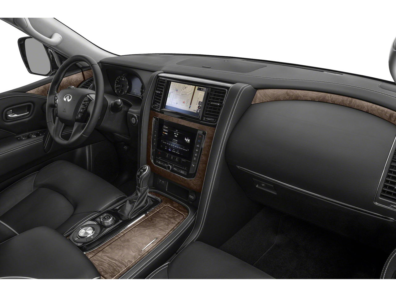 Step inside the QX80 and be enveloped in a world of unparalleled luxury. The premium leather-appointed seats, heated front buckets, and power-adjustable driver's seat provide unmatched comfort and support. The Bose® Audio System with 13 speakers surrounds you in rich, immersive sound, while the INFINITI InTouch™ Navigation system guides you effortlessly to your destination.