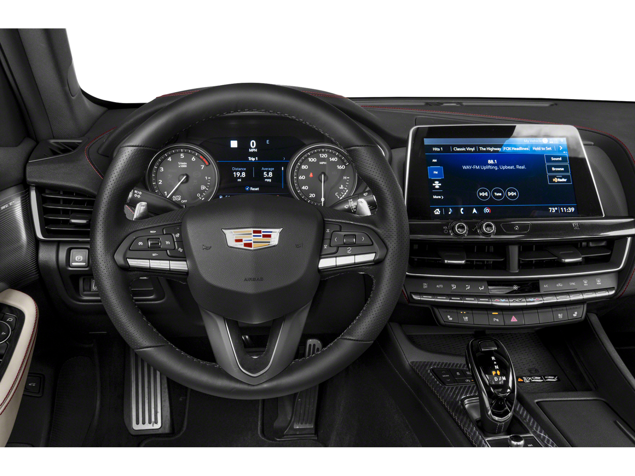 This 2022 Infrared Tintcoat Cadillac CT5 Sport RWD is well equipped and includes these features and benefits: Climate Package (Driver Power Lumbar Massage Seat, Front Passenger Power Lumbar Massage Seat, Heated Driver & Front Passenger Seats, Heated Steering Wheel, and Ventilated Driver & Front Passenger Seats), Navigation & Bose Premium Audio Package, Parking Package (Air Ionizer, Automatic Parking Assist w/Braking, Body-Color Heated Power-Adjustable Outside Mirrors, Hands-Free Decklid Release, HD Surround Vision, Rear Camera Mirror, and Rear Pedestrian Alert), Radio: Cadillac User Experience w/Embedded Nav (Bose Performance Series Premium 15-Speaker System and SiriusXM w/360L), Technology Package (12 Diagonal HD Color Reconfigurable Driver Cluster and Head-Up Display), Lighting Package (Front Cornering LED Lamps, Illuminating Door Handles, and Illuminating Front Sill Plates), Preferred Equipment Group 1SE (4-Wheel Antilock 4-Wheel Disc Brakes, Body-Color Heated Pwr-Adjustable Outside Mirrors, Dual Diagonal Color Driver Information Center, Front & Rear Park Assist, HD Rear Vision Camera, Inside Rear-View Auto-Dimming Mirror, Lane Keep Assist w/Lane Departure Warning, LED Reflective Windshield Alert, and Ride & Handling Suspension), CT5 Sport, RWD, Brembo V Performance Front Brakes (Red), Red Brembo Calipers, Wheels: 19 Alloy w/Satin Graphite Finish, 4-Wheel Disc Brakes, 9 Speakers, ABS brakes, Air Conditioning, Alloy wheels, AM/FM radio: SiriusXM with 360L, Apple CarPlay/Android Auto, Auto High-beam Headlights, Auto-dimming door mirrors, Auto-dimming Rear-View mirror, Automatic Stop/Start w/Disable, Automatic temperature control, Black Mirror Caps (LPO), Blue Brembo Calipers, Brake assist, Brembo V Performance Front Brakes (Blue), Bumpers: body-color, Compass, Delay-off headlights, Driver 4-Way Power Lumbar Seat Adjuster, Driver door bin, Driver vanity mirror, Dual front impact airbags, Dual front side impact airbags, Electronic Stability Control, Emergency communication system: OnStar and Cadillac connected services capable, Exterior Parking Camera Rear, Four wheel independent suspension, Front anti-roll bar, Front Bucket Seats, Front Center Armrest, Front dual zone A/C, Front License Plate Bracket, Front Passenger 4-Way Power Lumbar Seat Adjuster, Front Passenger 8-Way Power Seat Adjuster, Front reading lights, Fully automatic headlights, Garage door transmitter, HD Radio, Heated door mirrors, Illuminated entry, Inteluxe Seating Surfaces, Knee airbag, Leather steering wheel, Low tire pressure warning, Memory seat, Not Equipped w/Heated Steering Wheel (DISC), Occupant sensing airbag, Outside temperature display, Overhead airbag, Overhead console, Panic alarm, Passenger door bin, Passenger vanity mirror, Power door mirrors, Power driver seat, Power passenger seat, Power steering, Power windows, Premium 9-Speaker Audio System Feature, Radio data system, Radio: Cadillac User Experience, Rain sensing wipers, Rear anti-roll bar, Rear reading lights, Rear seat center armrest, Rear window defroster, Remote keyless entry, Speed control, Speed-sensing steering, Split folding rear seat, Spoiler, Steering wheel mounted audio controls, Surround Vision Recorder, Tachometer, Telescoping steering wheel, Tilt steering wheel, Traction control, Trip computer, Turn signal indicator mirrors, UltraView Dual Pane Sunroof, Variably intermittent wipers, Voltmeter, and Wheels: 19 Alloy w/Pearl Nickel Finish. CT5 Sport, RWD, 12 Diagonal HD Color Reconfigurable Driver Cluster, Air Ionizer, Automatic Parking Assist w/Braking, Body-Color Heated Power-Adjustable Outside Mirrors, Bose Performance Series Premium 15-Speaker System, Brembo V Performance Front Brakes (Red), Climate Package, Driver Power Lumbar Massage Seat, Front Passenger Power Lumbar Massage Seat, Hands-Free Decklid Release, HD Surround Vision, Head-Up Display, Heated Driver & Front Passenger Seats, Heated Steering Wheel, Navigation & Bose Premium Audio Package, Parking Package, Radio: