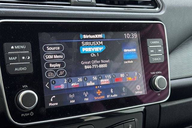 - Radio: NissanConnect EV w/Navigation/SiriusXM -inc: 8" color display w/multi-touch control, Nissan door to door navigation w/3D building graphics and satellite imagery, connected navigation features including online POI search, online premium traffic information, Over-the-Air (OTA) updates for head unit firmware and navigation map software via a Wi-Fi WPA2 connection, Apple CarPlay, Android Auto, HD Radio technology, SiriusXM radio w/advanced audio features, SiriusXM Traffic, SiriusXM Travel Link (weather, movie listings, stock info, sports and parking), USB connection port for iPod interface and other compatible devices, Bluetooth® hands-free phone system, streaming audio via Bluetooth®, hands-free text messaging assistant and 6 speakers