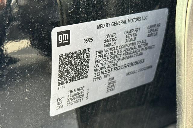 2025 Chevrolet Suburban Premier RWD Black EcoTec3 5.3L V8 Suburban Premier, 4D Sport Utility, EcoTec3 5.3L V8, Black, Jet Black w/Leather-Appointed Seating, 10 Speakers, 20" x 9" Polished Aluminum Wheels, 3.23 Rear Axle Ratio, 3rd Row 60/40 Power-Folding Split-Bench, 3rd row seats: split-bench, 4-Way Power Driver Lumbar Seat Adjuster, 4-Way Power Front Passenger Lumbar Seat Adjuster, 4-Wheel Disc Brakes, 8-Way Power Driver Seat Adjuster, 8-Way Power Front Passenger Seat Adjuster, ABS brakes, Adaptive suspension, Air Conditioning, Alloy wheels, AM/FM radio: SiriusXM with 360L, Apple CarPlay/Android Auto, Auto High-beam Headlights, Auto-dimming door mirrors, Auto-Dimming Inside Rear-View Mirror, Auto-dimming Rear-View mirror, Auto-leveling suspension, Automatic temperature control, Bose 10-Speaker Surround with CenterPoint, Brake assist, Bright Front and Rear Door Sill Plates, Bumpers: body-color, Chrome Door Handles with Body-Color Strip, Chrome Mirror Caps, Compass, Delay-off headlights, Driver door bin, Driver vanity mirror, Dual Exhaust System, Dual front impact airbags, Dual front side impact airbags, Electronic Stability Control, Emergency communication system: OnStar Services capable, Exterior Parking Camera Rear, Four wheel independent suspension, Front anti-roll bar, Front Bucket Seats, Front Center Armrest, Front dual zone A/C, Front fog lights, Front LED Fog Lamps, Front reading lights, Fully automatic headlights, Garage door transmitter, Heated 2nd Row Outboard Seats, Heated door mirrors, Heated Driver and Front Passenger Seats, Heated front seats, Heated Power-Adjustable Outside Mirrors, Heated rear seats, Heated Steering Wheel, Heated steering wheel, Illuminated entry, LED Headlamps with LED Daytime Running Lamps, LED Tail Lamps, License Plate Front Mounting Package, Low tire pressure warning, Magnetic Ride Control Suspension, Memory seat, Memory Settings, Navigation system: Google built-in compatibility (select service plan required, terms and limitations apply), Occupant sensing airbag, Outside temperature display, Overhead airbag, Overhead console, Panic alarm, Passenger door bin, Passenger vanity mirror, Perforated Heated and Ventilated Seats, Perforated Leather Seating Surfaces, Power door mirrors, Power driver seat, Power Liftgate, Power passenger seat, Power Release 2nd Row Bucket Seats, Power steering, Power Tilt and Telescopic Steering Column, Power windows, Power-Sliding Center Floor Console, Preferred Equipment Group 1LZ, Radio data system, Radio: 17.7" Diagonal Advanced Color LCD Display, Rain sensing wipers, Rear air conditioning, Rear anti-roll bar, Rear Power Liftgate, Rear reading lights, Rear window defroster, Rear window wiper, Remote keyless entry, Security system, SiriusXM with 360L Trial Subscription, Speed control, Speed-sensing steering, Split folding rear seat, Spoiler, Steering wheel memory, Steering wheel mounted audio controls, Tachometer, Telescoping steering wheel, Tilt steering wheel, Traction control, Trip computer, Turn signal indicator mirrors, Universal Home Remote, Variably intermittent wipers, Ventilated front seats, Voltmeter, Wireless Apple CarPlay/Wireless Android Auto, Wireless Phone Charging, Suburban Premier, 4D Sport Utility, EcoTec3 5.3L V8, Black, Jet Black w/Leather-Appointed Seating, 10 Speakers, 20" x 9" Polished Aluminum Wheels, 3.23 Rear Axle Ratio, 3rd Row 60/40 Power-Folding Split-Bench, 3rd row seats: split-bench, 4-Way Power Driver Lumbar Seat Adjuster, 4-Way Power Front Passenger Lumbar Seat Adjuster, 4-Wheel Disc Brakes, 8-Way Power Driver Seat Adjuster, 8-Way Power Front Passenger Seat Adjuster, ABS brakes, Adaptive suspension, Air Conditioning, Alloy wheels, AM/FM radio: SiriusXM with 360L, Apple CarPlay/Android Auto, Auto High-beam Headlights, Auto-dimming door mirrors, Auto-Dimming Inside Rear-View Mirror, Auto-dimming Rear-View mirror, Auto-leveling suspension, Automatic temperature control, Bose 10-Speaker Surround with CenterPoint, Brake assist, Bright