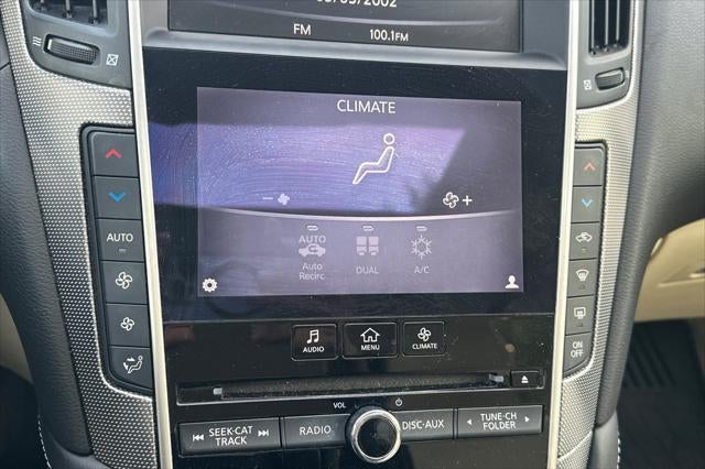 New Price! This 2017 Majestic White INFINITI Q50 2.0t Premium RWD is well equipped and includes these features and benefits: Q50 2.0t Premium, 4D Sedan, 2.0L 4-Cylinder DOHC Turbocharged, 7-Speed Automatic with Manual Shift, RWD, Majestic White, Wheat Artificial Leather, 16 Speakers, 17 x 7.5 Aluminum Alloy Wheels, 4-Wheel Disc Brakes, ABS brakes, Activation Disclaimer, Air Conditioning, Alloy wheels, AM/FM radio: SiriusXM, Anti-whiplash front head restraints, Auto-dimming Rear-View mirror, Automatic temperature control, BOSE Centerpoint Simulated Surround, Brake assist, Bumpers: body-color, CD player, Compass, Delay-off headlights, Driver door bin, Driver vanity mirror, Dual front impact airbags, Dual front side impact airbags, Electronic Stability Control, Four wheel independent suspension, Front anti-roll bar, Front Bucket Seats, Front Center Armrest, Front dual zone A/C, Front fog lights, Front reading lights, Fully automatic headlights, Garage door transmitter: HomeLink, Heated door mirrors, Illuminated entry, INFINITI Studio on Wheels by Bose, Leather Shift Knob, Leather steering wheel, Literature Kit, Low tire pressure warning, Occupant sensing airbag, Outside temperature display, Overhead airbag, Overhead console, Panic alarm, Passenger door bin, Passenger vanity mirror, Power door mirrors, Power driver seat, Power moonroof, Power passenger seat, Power steering, Power windows, Premium Leatherette Seating Surfaces, Premium Paint, Radio data system, Radio: AM/FM/CD w/MP3 Playback Capability, Rain sensing wipers, Rear anti-roll bar, Rear reading lights, Rear seat center armrest, Rear window defroster, Remote keyless entry, Security system, Speed control, Speed-sensing steering, Speed-Sensitive Wipers, Splash Guards, Steering wheel mounted audio controls, Tachometer, Telescoping steering wheel, Tilt steering wheel, Traction control, Trip computer, Turn signal indicator mirrors, and Variably intermittent wipers. Bluetooth®, MOON ROOF, BACK UP CAMARA, LEATHER SEATING, Q50 2.0t Premium, 4D Sedan, 2.0L 4-Cylinder DOHC Turbocharged, 7-Speed Automatic with Manual Shift, RWD, Majestic White, Wheat Artificial Leather, 16 Speakers, 17 x 7.5 Aluminum Alloy Wheels, 4-Wheel Disc Brakes, ABS brakes, Activation Disclaimer, Air Conditioning, Alloy wheels, AM/FM radio: SiriusXM, Anti-whiplash front head restraints, Auto-dimming Rear-View mirror, Automatic temperature control, BOSE Centerpoint Simulated Surround, Brake assist, Bumpers: body-color, CD player, Compass, Delay-off headlights, Driver door bin, Driver vanity mirror, Dual front impact airbags, Dual front side impact airbags, Electronic Stability Control, Four wheel independent suspension, Front anti-roll bar, Front Bucket Seats, Front Center Armrest, Front dual zone A/C, Front fog lights, Front reading lights, Fully automatic headlights, Garage door transmitter: HomeLink, Heated door mirrors, Illuminated entry, INFINITI Studio on Wheels by Bose, Leather Shift Knob, Leather steering wheel, Literature Kit, Low tire pressure warning, Occupant sensing airbag, Outside temperature display, Overhead airbag, Overhead console, Panic alarm, Passenger door bin, Passenger vanity mirror, Power door mirrors, Power driver seat, Power moonroof, Power passenger seat, Power steering, Power windows, Premium Leatherette Seating Surfaces, Premium Paint, Radio data system, Radio: AM/FM/CD w/MP3 Playback Capability, Rain sensing wipers, Rear anti-roll bar, Rear reading lights, Rear seat center armrest, Rear window defroster, Remote keyless entry, Security system, Speed control, Speed-sensing steering, Speed-Sensitive Wipers, Splash Guards, Steering wheel mounted audio controls, Tachometer, Telescoping steering wheel, Tilt steering wheel, Traction control, Trip computer, Turn signal indicator mirrors, Variably intermittent wipers.